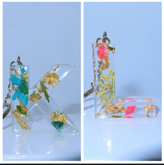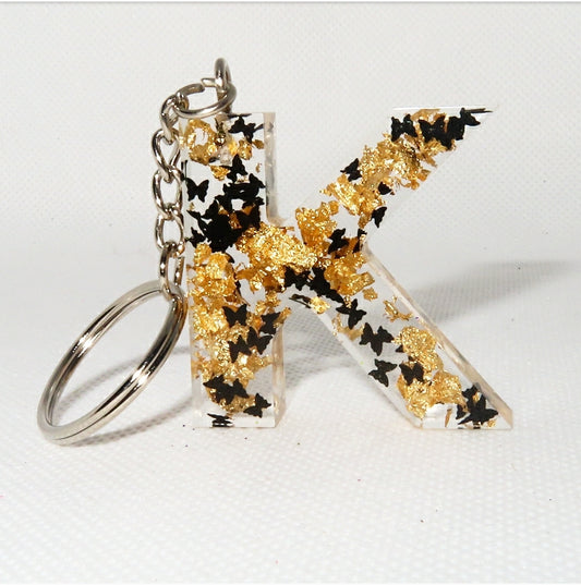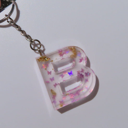 Handmade Butterfly Glitter and Gold Flakes Letter Key Chains